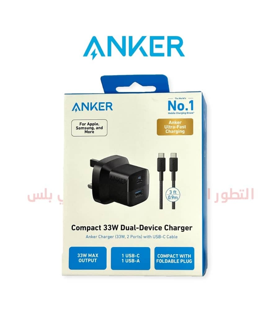 الشركة : ANKER المنتج : شاحن جداري المواصفات : سلك شاحن انكر USB و type-C بقوة 30 واط