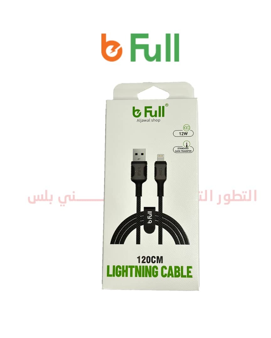 الشركة : bFull المنتج : كيبل شحن المواصفات : سلك شاحن قماشي USB ايفون بقوة 12 واط وبطول 1.2 متر
